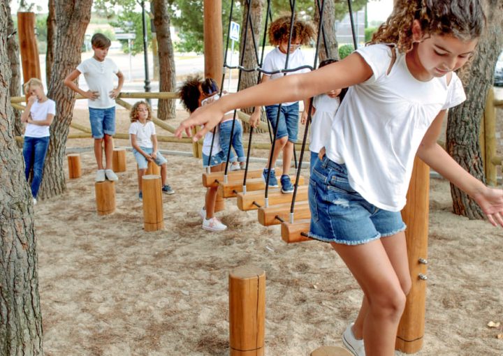 Esta gama presenta tres variantes, que realzan el protagonismo del material. En Natura, los postes reciben un tratamiento que acentúa los perfiles rectos y el carácter constructivo. En la variante Robinia, el respeto a la forma circular pone en valor esta madera sostenible y nos transporta a mundos de aventura y fantasía. Finalmente, y como homenaje a la Naturaleza, Ecopark convierte el diseño en una herramienta para respetar el entorno, ya que con unos elementos mínimos – cuerdas, piezas de madera - se configuran juegos certificados que parecen surgidos como una prolongación de las formas naturales del bosque.